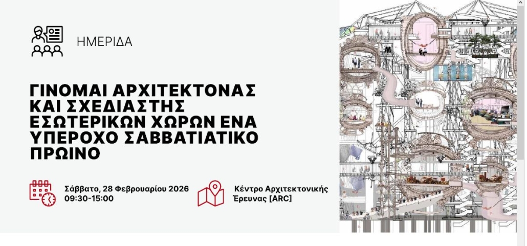 Το Τμήμα Αρχιτεκτονικής του Πανεπιστημίου Λευκωσίας σας προσκαλεί στην Ημερίδα με θέμα: Γίνοµαι Αρχιτέκτονας και Σχεδιαστής Εσωτερικών Χώρων ένα Υπέροχο Σαββατιάτικο Πρωινό, το Σάββατο, 28 Φεβρουαρίου 2026, μεταξύ 9:30 – 15:00 στο Κέντρο Αρχιτεκτονικής Έρευνας [ARC].